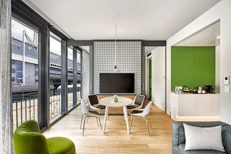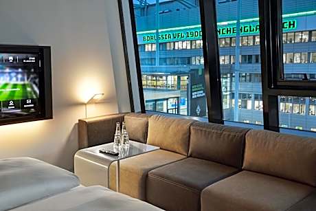 This hotel is located directly at the BORUSSIA-PARK stadium in Mönchengladbach. Free WiFi, a fitness studio and a 24-hour reception are offered at H4 Hotel Mönchengladbach im BORUSSIA-PARK. The avant-garde-style hotel provides contemporary rooms and suites. All rooms are air-conditioned and include a flat-screen TV, mini-bar, tea/coffee facilities and a private bathroom with shower and hairdryer. H4 Hotel Mönchengladbach im BORUSSIA-PARK offers breakfasts Not just ideal for football fans and concert goers, the hotel offers conference facilities and lies in the green surroundings of the Nordpark Rheindahlen, 0.6 mi from the A61 motorway. A direct stadium shuttle bus or bus line 17 take you directly here from Mönchengladbach Train Station, 3.7 mi away. On-site parking is available for a surcharge. The center of Mönchengladbach is within 15 minutes by car or bus.