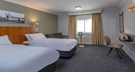 Boasting an 18-hole golf course and beautiful grounds to explore, Cambridge Bar Hill Hotel really is a place to unwind, let your hair down and enjoy some valuable ‘me’ time in beautiful Cambridgeshire. There is a wealth of attractions nearby if you fancy exploring the world around you. We’re located on the A14, just a mile from the M11, so getting around is a breeze. There’s also a bus stop just around the corner with regular services into the center of Cambridge. The famous academic city is 5 miles away, with its mesmerizing colleges and museums including the Fitzwilliam, home to over half a million artworks. One of the best ways to take in the sights is on a punt along the River Cam and, in the evening, see the city from a different perspective as it comes alive with cocktail bars and clubs. Elsewhere, Duxford’s Imperial War Museum has more than 300 aircraft on display, while Newmarket beckons for a day at the races. We have an onsite fitness rooms and each of our contemporary bedrooms have comfortable mattresses and plump pillows to help you get a great night’s sleep. You can relax in the Gallery Bar, which offers a selection of drinks and bar meals and has a decked area overlooking the golf course – pleasant in the warmer months.