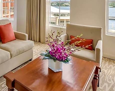Overlooking Hamilton Harbor, this luxury waterfront hotel features an infinity pool with Hamilton Harbor views and floating sun loungers; multiple on-site restaurants, Crown & Anchor, 1609 Bar & Restaurant, The Duchess Café & Gelateria, Intrepid Steak, Seafood & Raw Bar and our Beach Club Kitchen. Offering hardwood tables and a full-service bar, Crown & Anchor Bar, Restaurant, & Terrace is open for breakfast, lunch and dinner. While 1609 Bar & Restaurant is open seasonally with our open-air dining experience for lunch and dinner. Our new fine dining restaurant, Intrepid, is open Monday - Saturday for dinner service only, offering a contemporary twist on the classic American grill cuisine.
