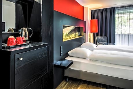 Leonardo Boutique Hotel Maastricht City Center former Designhotel is located in the trendy Wyck district only a 10-minute walk from the Vrijthof. This unique design hotel features a fitness center and has free Wi-Fi throughout. Design elements and stylish décor characterize the rooms at Leonardo Boutique Hotel Maastricht City Center former Designhotel. They each have a private bathroom and a flat-screen TV. The rooms can be personalized with added extras including more luggage space. The hotel is 492 feet and 2 minutes walking from Maastricht Central Railway Station and the Bonnefanten Museum is just over 10 minutes' walk away. Maastricht International Golf is 4 mi from the hotel.
