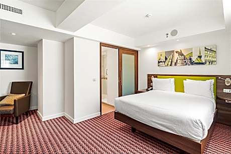 Hampton by Hilton Cluj-Napoca is located close to the city's business centers, at a 10-minute walk from the Old Town and a 10-minute drive from Cluj-Napoca International Airport. It offers modern rooms, business facilities, a lounge, and a fitness center. Free WiFi is available. The spacious rooms are air-conditioned and feature a flat-screen cable TV, a work desk and laptop desk, a safe, tea and coffee-making facilities, and a bathroom with toiletries and a hairdryer. Guests can relax in the lobby or catch up with work in the business center. You can also book a meeting room equipped with a projection screen, which can accommodate up to 25 people. The Cluj-Napoca Hampton by Hilton offers a buffet breakfast prepared with fresh ingredients, and there is a 24/7 snack area. For dinner, you can choose from the selection of dishes available in the menu. The city center and major attractions, such as St. Michael’s Church and the Botanical Gardens, are within walking distance. The nearest bus stop is 328 feet away, and Cluj-Napoca Train Station is 1.6 mi away.