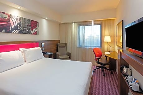 Less than a 5-minute walk from East Croydon Train Station, this hotel features a 24-hour front desk, and free Wi-Fi in all areas and bedrooms. There is an on-site gym and bar serving drinks and meals. Trains from there reach both London Victoria Train Station and London Bridge within 15 minutes. Gatwick Airport is a 35-minute drive away, and the M25 highway is a 10-minute drive from the building. A wide range of shops and restaurants can be reached in under 5 minutes by foot. Rooms at Hampton by Hilton London Croydon are elegant and modern, with a flat-screen TV and facilities for making tea and coffee. Each also has a laptop safe, ironing facilities, and a tiled bathroom with a shower and a hairdryer. Hampton by Hilton has a lounge for guests to relax in, and a hearty, free full English breakfast, is provided each morning. There is also an elevator for accessing the higher floors of the building.