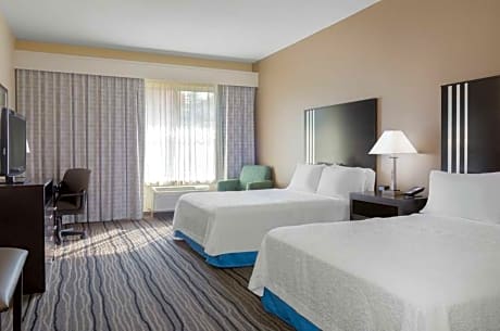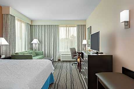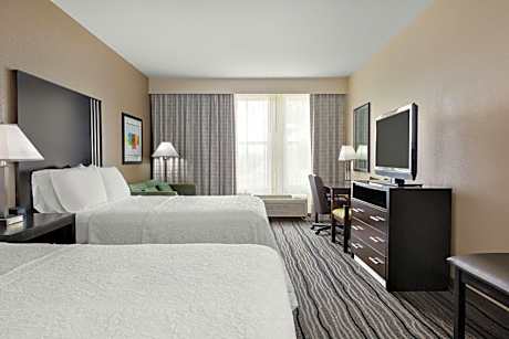 Located in downtown Mountain View, California, this hotel is 2 miles from Bayshore Sunnyvale Golf Course. It features a daily buffet breakfast and spacious rooms with free Wi-Fi. A microwave, refrigerator and coffee maker are furnished in every room at the Hampton Inn and Suites Mountain View. All rooms are warmly decorated with carpeted floors and include a cable TV and work desk. Free access to the gym and hot tub is provided to all guests of the Mountain View Hampton Inn. A business center and free on-site parking are also available. Stanford University and Paramount Great America theme park are both 7 miles from the hotel. San Jose International Airport is 11 miles away.