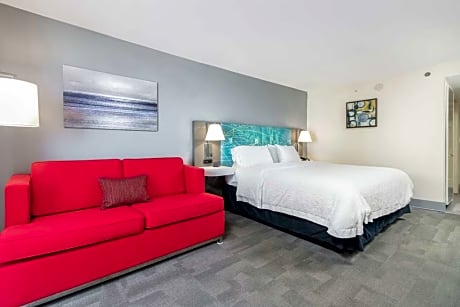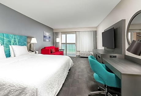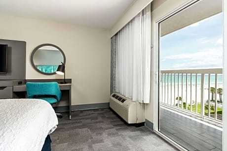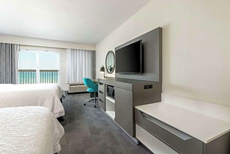 This hotel is located directly on the shores of the Atlantic Ocean in Daytona Beach Shores, Florida. It features a beach side pool with sundeck and spacious rooms with free Wi-Fi. The Ocean Center is 5 mi away. A microwave, refrigerator and coffee maker are standard in every room at the Daytona Shores Hampton Inn. Decorated with white linens and wood furniture, all rooms include a cable TV and hairdryer. Free access to the fitness center to all guests of the Hampton Inn Daytona Shores Oceanfront. A buffet breakfast with hot waffles is served each morning for hotel guests. Daytona Beach International Airport and Daytona International Speedway are both 15 minutes from the hotel. Daytona Lagoon Water Park is 5.2 mi away.