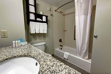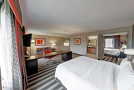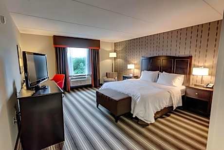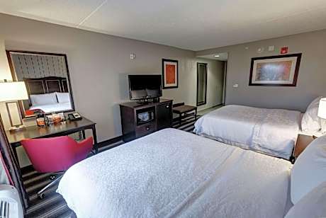 This Neptune, New Jersey hotel is half a mile from the Jersey Shore Premium Outlets and a 15-minute drive from the beach. Facilities include an indoor pool and free Wi-Fi access. A flat-screen TV is available in every guest room at the Hampton Inn Neptune. Decorated in bright colors and dark wood furnishings, each room has a desk and private bathroom. Select rooms have a microwave and refrigerator. Guests can relax in the hot tub after working out in the on-site fitness center. Laundry facilities and a 24-hour front desk are also provided at the Neptune Hampton Inn. A hot continental breakfast is served every morning in the hotel lobby. The hotel is half a mile off the Garden State Parkway. The Asbury Park Convention Hall is 6 miles away.