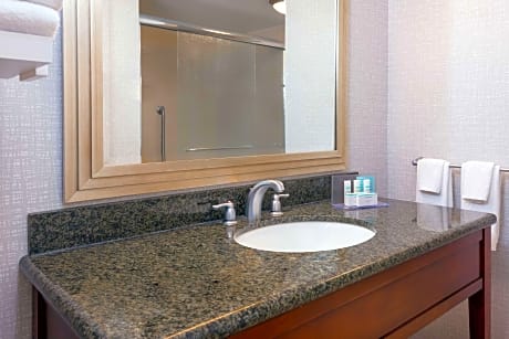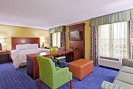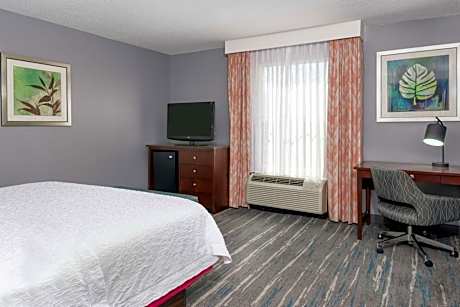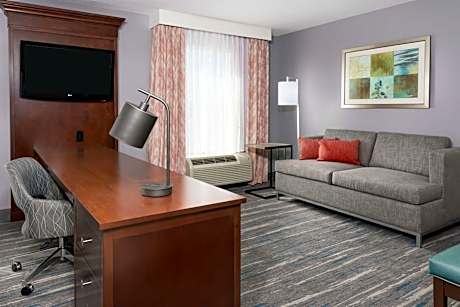 The Hampton Inn and Suites Orlando Airport at Gateway Village features an outdoor pool on site and offers a daily continental breakfast. Complimentary WiFi is provided for all guests. An airport shuttle is provided for all guests. This hotel is 20 minutes’ drive from SeaWorld Orlando. Rooms feature a flat-screen TV with cable channels. A refrigerator and coffee maker are provided as well. Select rooms include a microwave and a seating area. A fitness center is on site at the Orlando Gateway Village Hampton Inn and Suites and guests will also have access to laundry facilities. An airport shuttle is available for added convenience. The hotel is nonsmoking throughout. The Orange County Convention Center is 15 minutes’ drive from the hotel. Universal Studios Florida and Walt Disney World are 20 minutes’ car ride away.