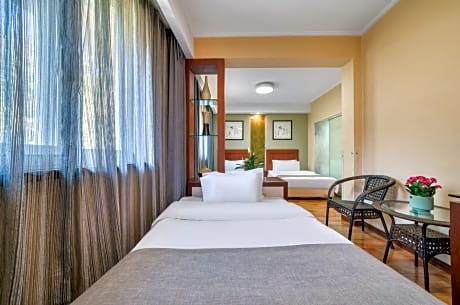 Located on the higher floors, room comes with a flat-screen cable TV, a work desk,a seating area, a closet and an attached bathroom with a hairdryer and a shower.