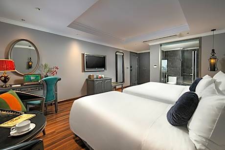 Great care is taken to ensure guests experience comfort through top-notch services and amenities. Remain linked during your visit by utilizing the complimentary internet access available. Prior to your check-in date, you can arrange airport transportation services, guaranteeing a seamless and efficient experience for both arrival and departure.Services offered by taxi, car hire and shuttle at the hotel ensure effortless exploration of Hanoi.Parking is accessible, supplied by the hotel for guests who arrive by car. Effortlessly plan your daily activities and travel requirements with concierge service, express check-in or check-out, luggage storage and safety deposit boxes provided by the front desk services.Securing passes to the city's top attractions is simple with the hotel's ticket service and tours. For extended visits or whenever required, the dry cleaning service and laundry service ensures your preferred travel garments remain clean and accessible. During leisurely days and evenings, in-room amenities such as room service and daily housekeeping enable you to maximize your stay in the room.For minor or impromptu requirements, the convenience stores can promptly cater to them without the necessity of stepping out from the hotel.The hotel is completely smoke-free. In limited designated zones, smoking is exclusively permitted. Crafted for coziness, every guestroom provides an array of features, guaranteeing a tranquil night's sleep while maintaining the level of comfort.For a more enjoyable stay, select rooms at hotel are equipped with blackout curtains and air conditioning.At Hanoi L'Heritage Hotel, a selection of rooms can be found that showcase unique design elements such as a balcony or terrace. For certain chosen rooms, guests can enjoy in-room amusement like television and cable TV as a part of their stay.Rest assured that your hydration needs will be met, as some guestrooms are equipped with a refrigerator, a coffee or tea maker, bottled water, instant coffee, instant tea and mini bar. It is worth noting that certain guest bathrooms feature a hair dryer, toiletries and bathrobes for your convenience. Begin your day on a delightful note with a scrumptious complimentary breakfast, consistently served at Hanoi L'Heritage Hotel.Begin your holiday mornings right with your essential cup of coffee, offered daily at the cafe on-site. During your visit, indulge in a range of delightful culinary choices at hotel to enhance your experience. Hanoi L'Heritage Hotel provides a superb assortment of leisure amenities for guests to enjoy.Treat and spoil yourself by stopping at massage and spa for a memorable experience.Eliminate those holiday calories by stopping by hotel and making use of their well-equipped exercise amenities.