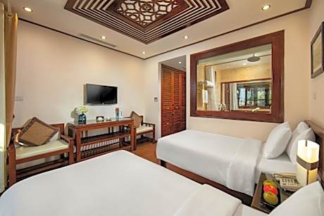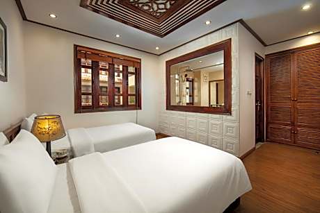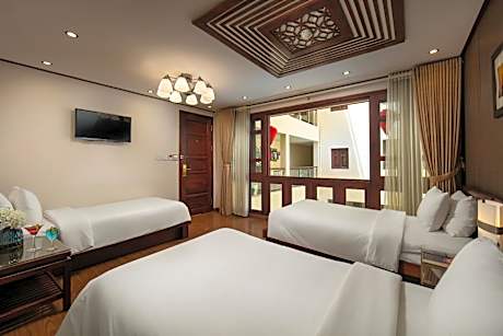 Hanoi Nostalgia Hotel & Spa offers top-notch services and amenities, ensuring guests experience utmost comfort.Share your photos and respond to emails at your convenience, thanks to the free Wi-Fi internet access offered by hotel.Should you require transportation to or from the airport, hotel is able to organize it prior to your arrival date.Taxi and car hire offerings at the hotel simplify arranging your excursions, explorations, and additional activities in Hanoi. Reception services such as luggage storage and safety deposit boxes are available to accommodate your requirements. Securing top-notch tickets and snagging sought-after dining reservations become effortless, thanks to the hotel's ticket service and tours.Relax and feel the warmth in the hotel's inviting lobby, featuring an enchanting on-site fireplace.Traveling with minimal baggage is achievable at Hanoi Nostalgia Hotel & Spa, as the hotel's dry cleaning service and laundry service ensures your garments stay fresh. Room amenities feature daily housekeeping, allowing you to unwind and make the most of your visit.The hotel maintains a completely smoke-free zone, providing a breathable atmosphere.Smoking is limited to specified smoking zones. Each accommodation at Hanoi Nostalgia Hotel & Spa is thoughtfully created and adorned to provide visitors with a comfortable, home-like atmosphere. In certain rooms, the hotel offers linen service, blackout curtains and air conditioning for guest convenience and satisfaction. At Hanoi Nostalgia Hotel & Spa, uniquely crafted rooms provide various layout choices, featuring spaces equipped with separate living room and balcony or terrace. In select rooms, guests at the hotel can enjoy top-notch in-room entertainment with television and cable TV available for their convenience. Rest assured, in a few chosen rooms, you will find the convenience of a refrigerator, bottled water, a coffee or tea maker, instant coffee, instant tea and mini bar at your disposal. Maintain your cleanliness and comfort using a hair dryer, toiletries and bathrobes available in select guest restrooms. Begin your holiday on a high note. At Hanoi Nostalgia Hotel & Spa, your mornings are greeted with a delightful, free breakfast. Should you prefer not to venture out for a meal, the enticing culinary choices at hotel are always available for your satisfaction. Indulge in the numerous pursuits available at Hanoi Nostalgia Hotel & Spa.Unwind after a long day by stopping by massage, spa and sauna to rejuvenate your senses. Each day at hotel, immerse yourself in the invigorating waters of the pool, perfect for a rejuvenating plunge or a series of revitalizing laps.