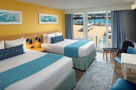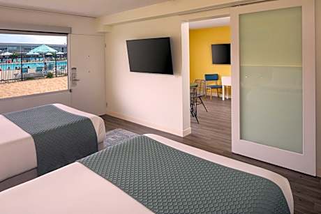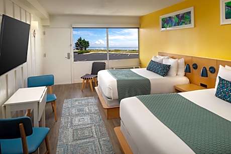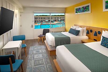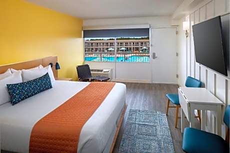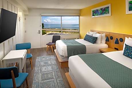 The rooms at Harbor Hotel Provincetown are designed to provide both comfort and function, with bright color schemes that reflect the lively spirit of the area. Every room is equipped with modern amenities including a flat-screen TV, ensuring a restful and entertaining stay.