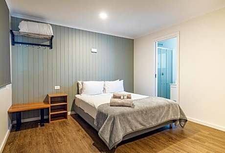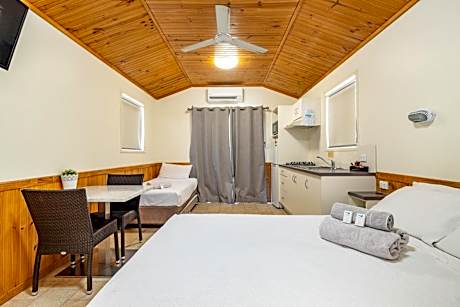 This open-plan family room has a fully-equipped kitchenette, air conditioning and access to shared bathroom facilities.