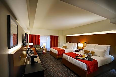 Each guest room is equipped with state-of-the-art amenities, including a flat-screen TV and iPod docking station, ensuring a comfortable and connected stay. The Hard Rock Hotel & Casino Tulsa is more than just a place to rest; it's a destination that captivates your senses, with a free airport shuttle to Tulsa International Airport adding to the convenience. Whether it's the thrill of the casino, the pulse of live music, or the tranquility of the pool, guests are guaranteed an unforgettable experience. Situated just 20 minutes from Tulsa city center, the hotel offers easy access to the city's attractions, making it the perfect base for exploring what Tulsa has to offer.
