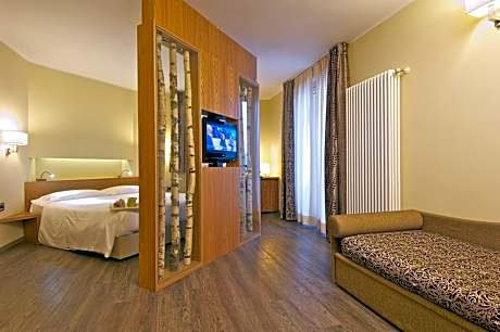 Located in Selvino, 12 miles from Gewiss Stadium, Harmony Suite Hotel has accommodations with a shared lounge, private parking, a terrace and a bar. Featuring a kids' club, this property also welcomes guests with a restaurant, a water park and a seasonal outdoor pool. The property provides entertainment staff and room service. At the hotel, rooms are equipped with a desk and a flat-screen TV. With a private bathroom equipped with a bidet and free toiletries, rooms at Harmony Suite Hotel also feature free WiFi, while some rooms have a mountain view. The rooms will provide guests with a closet and an electric tea pot. The accommodation has a playground. Guests at Harmony Suite Hotel will be able to enjoy activities in and around Selvino, like skiing. Accademia Carrara is 13 miles from the hotel, while Centro Congressi Bergamo is 13 miles away. Orio Al Serio International Airport is 14 miles from the property, and the property offers a paid airport shuttle service. License Number(s): 016197-ALB-00003, IT