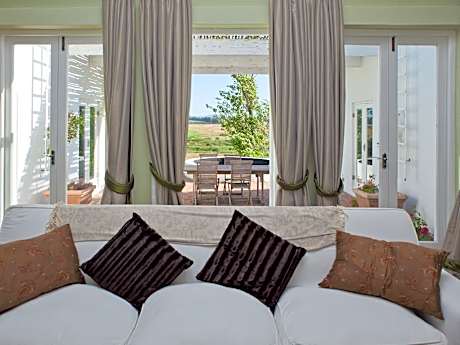 Hawksmoor House is an authentic Cape Dutch country house is set on a working wine farm, along the Stellenbosch Wine Route. It features 15 elegant, individually decorated rooms and an outdoor pool with Table Mountain views. All the property's charming buildings are original footprints of the historic farm, converted with great sympathy and flair by the owners, and furnished with an elegant mix of beautiful antique pieces. Each building offers a different perspective on the landscape and farm, and each room is individually decorated. No matter what room you stay in, the experience is consistently elegant and the hospitality warm and relaxed. Hawksmoor House offers a totally unspoiled, unpolished and authentic country home experience for those who need some well-deserved rest. It's the perfect place to unwind.