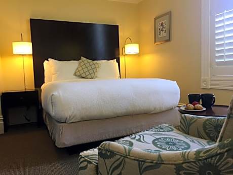 This bed and breakfast is located directly on the historic Healdsburg Plaza in Healdsburg, California. A free buffet breakfast and afternoon wine and hors d' oeuvres are provided daily. Each guest room at the Healdsburg Inn on the Plaza is individually decorated. Free WiFi and bathrobes are included. Free water, coffee and tea are available throughout the day. This Inn on the Plaza in Healdsburg is surrounded by shops, restaurants and wine tasting rooms.