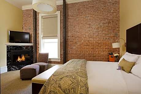 - Private entrance - King bed, gas fireplace, private deck - Private tile bathroom with a jetted spa bathtub & separate shower - Full kitchen and bistro table, in-room coffee and tea - 2 plush bathrobes - Flat panel television, DVD player and an iPod docking station