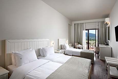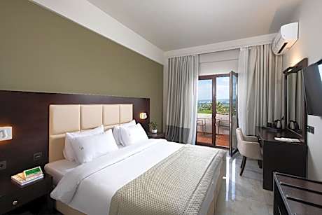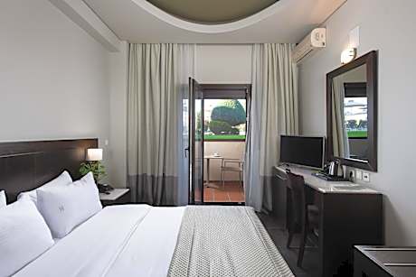 Heaven Hotel Thessaloniki Airport is located among the lush hills of Tagarades with a panoramic view of the city and the Thermaic Gulf. It features a large salt-water swimming pool, a bar with city views and a spacious lobby with free WiFi internet access. Free private parking is available. The modern and comfortable rooms are equipped with air conditioning, satellite TV, free WiFi, mini-bar, while there is also a spa bath in some. The bar is placed on the third floor of the hotel in a pleasant and bright environment with unique view where you can enjoy your drink during your stay. The Heaven is 5.6 mi from Macedonia International Airport and 9.3 mi from Thessaloniki city center.