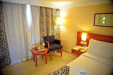 Overlooking a private beach and the turquoise waters of Naama Bay, Marina Sharm Hotel offers spacious rooms, most of them with private balconies. There are 2 outdoor pools and a wellness center. WiFi access to be available at the lobby area and it’s free of charge Rooms at this 4-star hotel all have floor-to-ceiling windows and modern furnishings. They come equipped with air conditioning, mini-bar and satellite flat-screen TV. All rooms offer Red Sea views. Dining options at the Marina Sharm include the Mermaid seafood restaurant, also serving Italian cuisine. The beach bar offers cocktails, refreshing beverages and live music entertainment. Guests of the Marina Sharm can treat themselves to a rejuvenating massage, or relax in the spa pool, hammam or sauna. The hotel also has a children’s playground, and a games room with billiards. The Marina Sharm is 6.8 mi from Sharm El Sheikh International Airport, 4.3 mi from the Old Market and a 15-minute drive from the town’s center. The hotel provides 24-hour front desk service.
