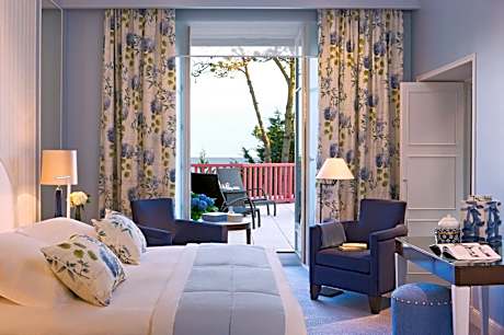 This 5-star luxury hotel is located right on the beachfront at La Baule. It features indoor and outdoor sea-water pools, sauna and fitness center, as well as a pool-side bar. Free WiFi access is provided. A Leisure activities & Advantages card will be offered to each guest upon arrival, offering access to a range of leisure activities and exclusive discounts. Guest rooms at the Hermitage Barriere have been designed by the decorator Chantal Peyrat. All rooms are air-conditioned and equipped with a mini-bar and cable TV. Some rooms also have large terraces overlooking the sea. A continental buffet breakfast is served every day in the breakfast room, guests may also enjoy their breakfast in the comfort of their room. The Barriere has several restaurants, where guests can enjoy refined and traditional French cuisine. One of the restaurants features a terrace overlooking the sea. There is also a salad bar at the pool-side Bar Les Evens, open until midnight. Guests will have access to the tennis court for free and horse riding lessons at an additional cost. 11 meeting rooms are available at Hôtel Barrière L'Hermitage. Hermitage Barriere is less than a 10-minute drive from Pornichet and a 20-minute drive from Saint-Nazaire. Golf International Barrière La Baule is 5 mi from the property. The hotel provides bicycles free of charge.