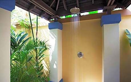 This villa offers free Wi-Fi, seating area, flat-screen TV and a terrace with garden views. The full bathroom includes a shower and the kitchen is fully equipped with coffee maker. It also has a private pool and a private deck.