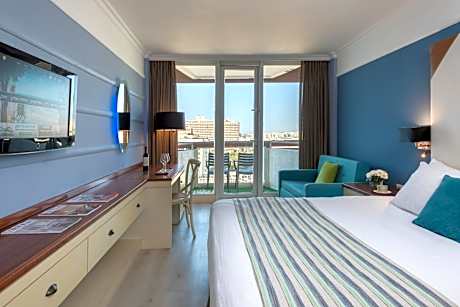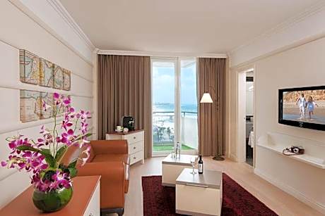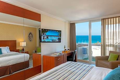 Set right on the beach, Herods Tel Aviv overlooks the marina. It offers an Executive Business Lounge on the 17th floor and rooms with balconies and Mediterranean Sea views. Each room has a contemporary design and a range of modern amenities. These include free WiFi access, an LCD TV and tea and coffee-making facilities. Each bathroom comes with a cozy bathrobe and a hairdryer. Breakfast is buffet style at Herods Tel Aviv By The Beach. It is served in the restaurant with sea views, also open for lunch and dinner. Drinks and snacks are available from Tnuval'e during the day. The wellness area includes an outdoor pool, open during summer, plus a sauna and fitness center. The hotel has a great beach location but is also just 10 minutes' walk Dizengoff Street, full of shops and cafés. Check-in time on Saturday - about an hour after Shabbat ends.