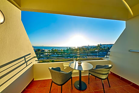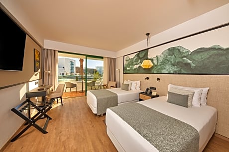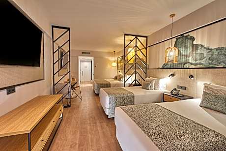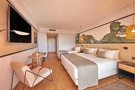FAMILY ROOM SIDE OCEAN VIEW 2 ADULTS + 2 CHILDREN is 409 square feet and includes either a king-size bed 150-183 width or 2 single beds 80-130 width plus balcony, satellite tv , hairdryer, tea and coffee making facilities , safe, bathrobes, and slippers.
