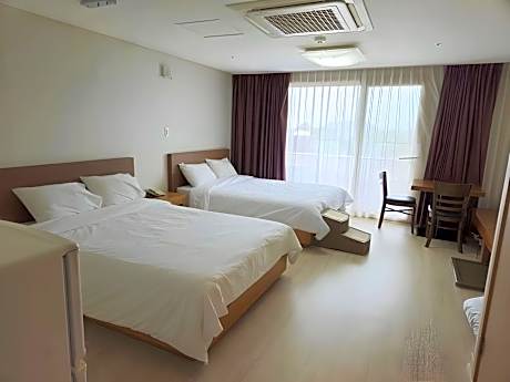 Great care is taken to ensure guests experience comfort through top-notch services and amenities. Remain linked during your visit by utilizing the complimentary internet access available. The hotel offers complimentary parking for guests who arrive with their own mode of transport. Effortlessly plan your daily activities and travel requirements with concierge service and luggage storage provided by the front desk services.For minor or impromptu requirements, the convenience stores can promptly cater to them without the necessity of stepping out from the hotel. The hotel is completely smoke-free. Crafted for coziness, every guestroom provides an array of features, guaranteeing a tranquil night's sleep while maintaining the level of comfort.For an elevated experience at hotel, select rooms are equipped with air conditioning to improve your stay.At Hi Jeju Hotel, a selection of rooms can be found that showcase unique design elements such as a balcony or terrace. For certain chosen rooms, guests can enjoy in-room amusement like television and cable TV as a part of their stay.Rest assured that your hydration needs will be met, as some guestrooms are equipped with a refrigerator and bottled water.It is worth noting that certain guest bathrooms feature a hair dryer and toiletries for your convenience. License Number(s): 제2013-00030호