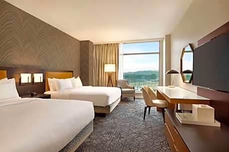 Hilton Alpharetta Atlanta has a seasonal outdoor swimming pool, fitness center, a shared lounge and terrace in Alpharetta. Among the facilities of this property are a restaurant, room service and a 24-hour front desk, along with free WiFi throughout the property. Staff on site can arrange a shuttle service. Guest rooms in the hotel are equipped with a flat-screen TV. The rooms at Hilton Alpharetta Atlanta have air conditioning and a desk. An American breakfast is available at the accommodation. Guests can use the business center or relax in the bar. Atlanta History Center is 21 miles from Hilton Alpharetta Atlanta, while Truist Park is 23 miles from the property.