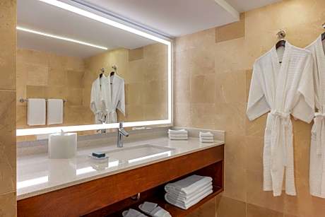 Each room at Hilton Aruba Caribbean Resort & Casino is designed for comfort, featuring amenities such as a TV, private bathroom, and optional balcony or patio. Guests can request bathrobes for added comfort. The resort offers a variety of dining options, including fresh seafood at the Sunset Grille Restaurant and international cocktails at Mira Solo Bar.