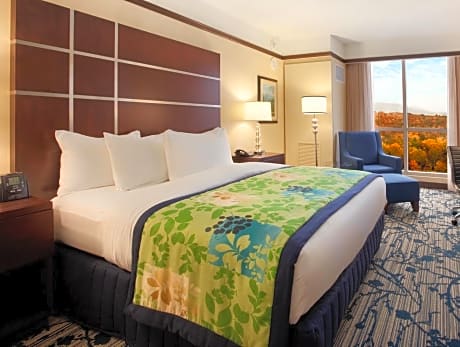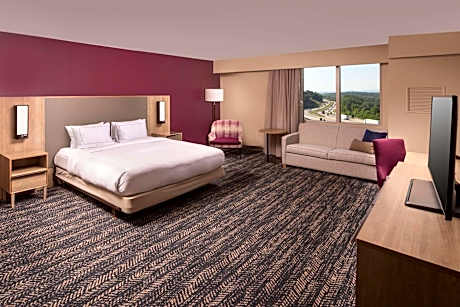 Each guest room at Hilton Asheville Biltmore Park is well-appointed with sophisticated amenities including a flat-screen LCD TV, a coffee maker, and a mini-refrigerator. The inclusion of a work desk in every room makes staying productive easy for those visiting on business.