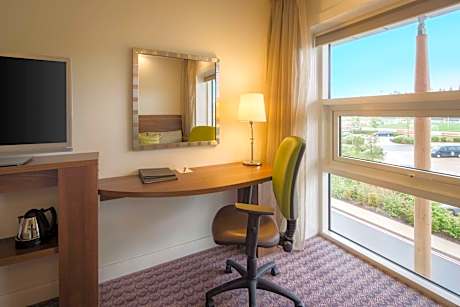 This contemporary double room has a 40-inch TV, free WiFi, work desk, and views of the courtyard garden or football pitches.