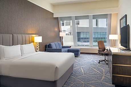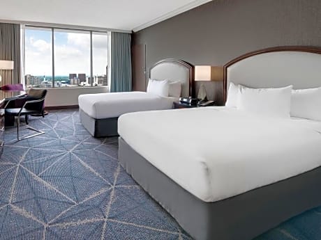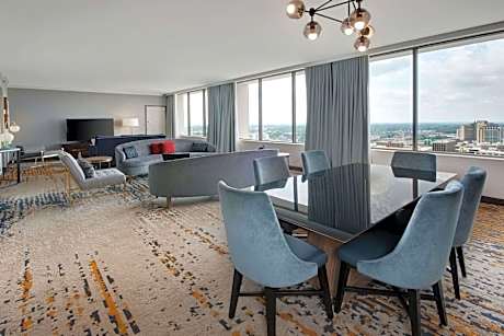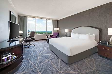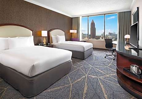 The downtown Atlanta Hilton is just a mile walk to world famous attractions like Centennial Olympic Park, Georgia Aquarium, and Mercedes-Benz Stadium. The beautiful Atlanta BeltLine art installations and trails are nearby, and features include a fitness center, 3 on-site restaurants and an expansive outdoor wellness space with pickleball, basketball and a jogging track overlooking the skyline. Atlanta Botanical Garden is 2.2 mi away. Southern Elements serves modern Southern cuisine, Trader Vic's offers island-inspired, Polynesian fare and MarketPlace offers coffees, teas and meals for takeaway. Nikolai's Roof is a stunning rooftop event and restaurant space perfect for intimate gatherings and upscale group dinners. Concierge and business center are offered to all Hilton Atlanta guests. Both self-parking and valet are conveniently available on site for a charge. Flat-screen TVs, granite-top desks with ergonomic chairs, and coffee machine are in every room. Suites include a dining area and a living room. Handicap accessible rooms are available. Atlanta Civic Center is also 8 minutes’ walk from Hilton Atlanta and 1.9 mi from Piedmont Park. Hartsfield–Jackson Atlanta International Airport is 9.6 mi away. Mercedes-Benz Stadium and State Farm Arena are within 2 miles' drive of the property.