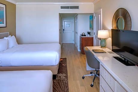 - Luxurious rooms with ocean view balconies, cable TV with HBO, mini-bar, and coffee maker.