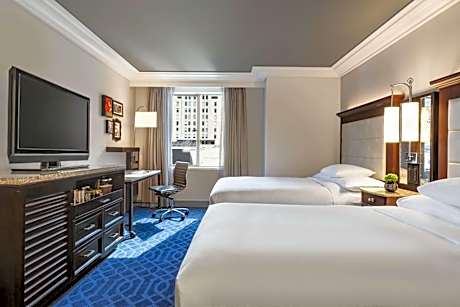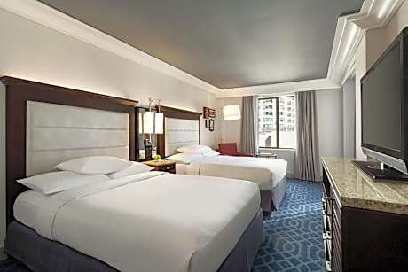 Designed in 1927 by Charles F. Whittlesey, our restored hotel in the Financial District is a piece of Los Angeles history with panoramic views of the city from our rooftop deck. We're within a mile of Disney Concert Hall, The Broad, and the Los Angeles Convention Center. Just 5 minutes' walk from Pershing Square Subway Station, this European-style hotel features a restaurant, gym and rooftop that overlooks downtown Los Angeles. Every room offers a 42-inch flat-screen TV with HBO. Checker’s Restaurant offers California cuisine with French and Asian influences and serves breakfast, lunch and dinner. Guests at Hilton Los Angeles can enjoy a martini in Checker’s Lounge. Located in the business and financial district of Los Angeles, this hotel is within 9 minutes' walk of Los Angeles Theater and Walt Disney Concert Hall.