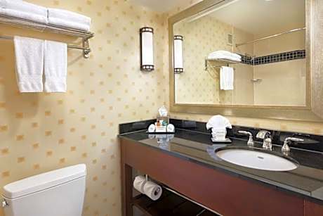 Located on O’Hare International Airport grounds, this hotel offers an indoor walkway to domestic terminals and the Blue-line train station, offering easy access to downtown Chicago. The hotel features 3 restaurants and free WiFi access in the lobby. Every room at Hilton Chicago O’Hare Airport features blackout curtains and sound-resistant windows, along with a 55-inch flat-screen HDTV and work desk with ergonomic chair. Room service is available daily. Andiamo offers a contemporary, elegant atmosphere to enjoy a glass of wine from the expansive wine list or locally-sourced cuisine for breakfast, lunch and dinner. Live music and fine dining come together at the 20s-inspired Gaslight Club restaurant. For a more relaxed, casual setting to catch a sports game, guests can visit the Sports Edition Bar. Grab n’ go food options are also provided. The hotel also offers a barber shop, business center and 50,000 square feet of meeting space. Donald E Stevens Convention Center and Fashion Outlets of Chicago are both 3 miles away from the hotel. AllState Arena and Rivers Casino are a 12-minute drive away.