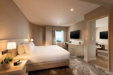 Located in Darwin city center, just 820 feet from the Esplanade, Hilton Darwin features a restaurant, bar and outdoor swimming pool. Many rooms have views of Darwin Harbor. There is also an exclusive executive lounge, offering stunning views from the 20th floor. The spacious rooms at Hilton Darwin feature modern décor and local Aboriginal artworks. Each room includes a mini-bar, cable TV and air conditioning. All private bathrooms have a bathtub. Some rooms offer access to the Executive Lounge which provides free continental breakfast. Guests can work out at the state-of-the-art fitness center, with glimpses of Darwin Harbor and Parliament House, or relax by the rooftop pool offering city views. There is a 24-hour business center, tour desk and an on-site beauty salon. The signature PepperBerry restaurant, open daily for breakfast and dinner, showcases modern Australian cuisine. The hotel also features the Palm Court Bar & Lounge offering an extensive selection of wines, champagnes, cocktails and bar snacks. Hilton Darwin overlooks Darwin Harbor and the Smith Street Mall is only 5 minutes' walk away. Darwin Convention Center is a 10-minute walk. Darwin International Airport is 15 minutes' drive away.