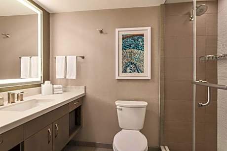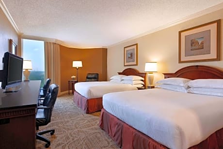 This Grapevine hotel is 10 minutes' drive from the DFW International Airport. The airport shuttle is NOT 24 Hour. The hotel also offers a sports club, private lake and on-site dining. Hilton DFW Lakes guest rooms are furnished with a large work desk and a seating area. A coffee maker, cable TV and in-room movies are included. DFW Lakes Hilton features a full-service business center and concierge desk. Two restaurants are offered at the hotel along with Java Coffee Shop. The Lakes Sports Club is a full-service health club. It offers a modern gym and indoor and outdoor pools. Outdoor tennis and basketball courts and a jogging track are also featured. Cowboy's Stadium is 20 minutes' drive from the Hilton DFW Lake Conference Center. Grapevine Mills Mall is 5 minutes away.