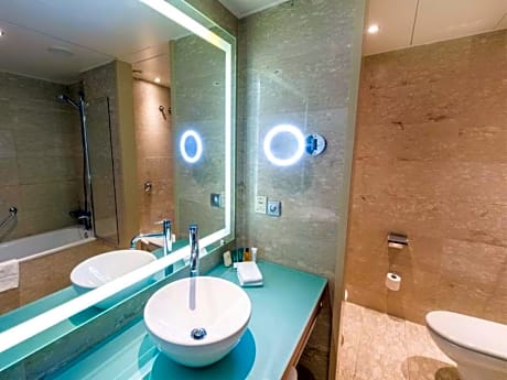 Hilton Diagonal Mar Barcelona has a seasonal outdoor swimming pool, fitness center, a terrace and restaurant in Barcelona. With free WiFi, this 4-star hotel offers room service and an ATM. The property has a concierge service, a tour desk and currency exchange for guests. The hotel will provide guests with air-conditioned rooms offering a desk, a safety deposit box, a flat-screen TV and a private bathroom with a bidet. All rooms will provide guests with a fridge. A buffet breakfast is available at Hilton Diagonal Mar Barcelona. The area is popular for cycling, and bike rental and car rental are available at the accommodation. Staff speak Arabic, Catalan, German and English at the reception. Llevant is a 5-minute walk from Hilton Diagonal Mar Barcelona, while Port Olimpic is 2.6 miles away. Barcelona-El Prat Airport is 11 miles from the property, and the property offers a paid airport shuttle service.