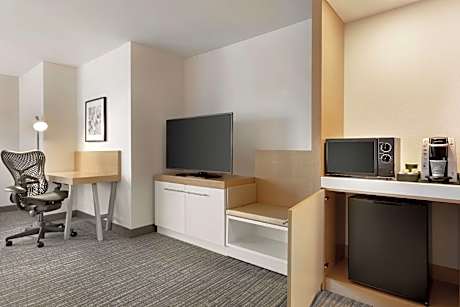 Welcome to the Hilton Garden Inn Bridgewater, a hotel offering exceptional service and comfort in the heart of The Promenade shopping center. Located just a short drive from the Bridgewater Arena and major corporate offices like AT&T, this hotel is ideal for both business and leisure travelers. Guests can unwind in the indoor swimming pool or catch up on work in the 24-hour business center. Enjoy complimentary Wi-Fi throughout the hotel, and take advantage of the in-room amenities including a microwave and refrigerator. Each room also features free HBO and video games for your entertainment.