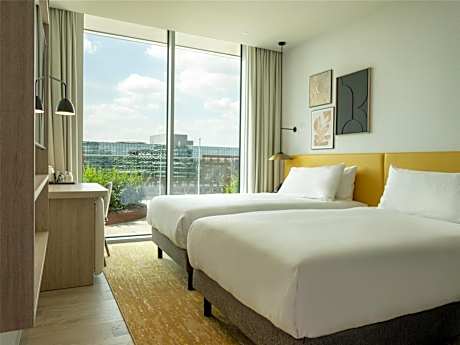 Located in Diegem, 6.2 miles from Berlaymont, Hilton Garden Inn Brussels Airport has accommodations with a shared lounge, private parking, a terrace and a restaurant. This 4-star hotel offers a bar. The property provides a 24-hour front desk, airport transportation, luggage storage space and free WiFi. All rooms at the hotel come with air conditioning, a seating area, a flat-screen TV with cable channels, a safety deposit box and a private bathroom with a shower, free toiletries and a hairdryer. Guest rooms will provide guests with a fridge. A buffet, continental or vegetarian breakfast is available at the property. Tour & Taxis is 6.2 miles from Hilton Garden Inn Brussels Airport, while European Parliament is 7.1 miles from the property. Zaventem Airport is 3.7 miles away.