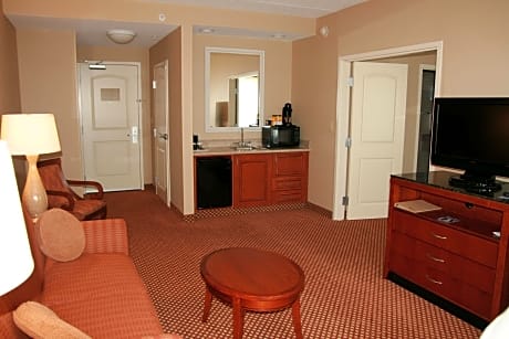 This Groton, Connecticut hotel is 7 minutes from Trumbull Golf Course and Groton-New London Airport. It features an on-site restaurant, indoor pool and spacious rooms with a 32-inch flat-screen TV. Free Wi-Fi and an iPod docking station are standard in every room at the Hilton Garden Inn Mystic/Groton. All rooms are warmly decorated with white linens and include a microwave, refrigerator and coffee maker. The Great American Grill is open daily for breakfast and dinner. Snacks and beverages can be purchased 24/7 at the Pavilion Pantry Snack Shop. Free access to the gym and hot tub is provided to all guests of the Groton Hilton Garden Inn. A business center and free on-site parking are also available. Mystic Aquarium and Bluff Point State Park are both 7.5 miles away.