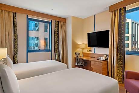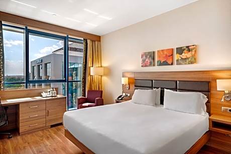 Offering a seasonal outdoor swimming pool and 24-hour gym, Hilton Garden Inn Sevilla is located in the Parque Empresarial Torneo Business District. It has a 24-hour business center and restaurant. Each modern air-conditioned room features free WiFi and large windows with views of the outdoor pool. They come with a laptop-sized safe, cable TV, and a large work desk with an ergonomic chair. There is also a small fridge, ironing facilities and a private bathroom with a hairdryer. Staff at the 24-hour reception can help with car rental, available for a surcharge. There is also a free laundry service and free color printing, fax and photocopy machines. Other facilities include a paddle court. The Garden Grill & Bar serves à la carte meals. while snacks or ready meals can be bought at the 24-hour Pavilion Pantry. A breakfast buffet is served and room service is currently not available. Sevilla city center is around 3.1 mi from the Hilton Garden Inn, and can be reached by bus from a stop 820 feet from the hotel. Sevilla Airport is just 10 minutes’ drive away.