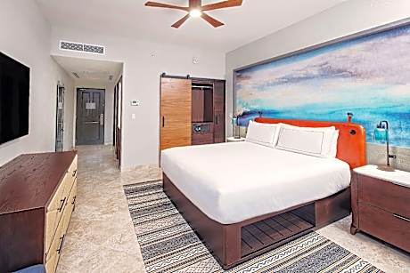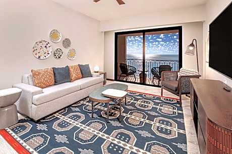 Set in Cabo San Lucas, La Pacifica Hilton Grand Vacations Club La Pacifica Los Cabos offers beachfront accommodations 1.1 mi from El Tule Beach and offers various facilities, such as a restaurant, a fitness center and a bar. This 5-star resort offers a kids' club and an ATM. The accommodations features a 24-hour front desk and room service for guests. All guest rooms at the resort come with air conditioning, a seating area, a flat-screen TV with cable channels, a safety deposit box and a private bathroom with a shower, bathrobes and slippers. Rooms have a coffee machine, while certain rooms also offer a kitchen with a dishwasher, an oven and a stovetop. At Hilton Grand Vacations Club La Pacifica Los Cabos all rooms include bed linen and towels. The accommodations offers a terrace. The area is popular for hiking, and car hire is available at La Pacifica Los Cabos by Hilton Grand Vacations. Los Cabos Hall is 2.2 mi from the resort, while El Arco is 11 mi from the property. The nearest airport is Los Cabos International Airport, 12 mi from La Pacifica Los Cabos by Hilton Gra.