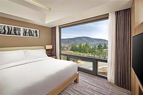 Experience an abundance of unparalleled facilities and features at Hilton Gyeongju. Maintain seamless communication using the complimentary Wi-Fi at hotel.Effortlessly arrange transportation to and from the airport using the hotel's airport transfer services.Discovering Gyeongju-si becomes even more accessible through the taxi, car hire and shuttle amenities provided at the hotel.For visitors traveling by automobile, complimentary parking is available.During your stay at this fantastic hotel, the attentive front desk personnel can provide you with a range of amenities such as concierge service, luggage storage and safety deposit boxes. In search of city's top entertainment, seek assistance at the hotel's ticket service and tours for reservations.At the hotel, utilize the on-site dry cleaning service and laundry service to maintain your beloved travel attire fresh, allowing you to bring fewer clothes.Craving relaxation? Make the most of your stay at the Hilton Gyeongju with convenient amenities like 24-hour room service, room service and daily housekeeping at your disposal.Kindly note that smoking is prohibited in the hotel to ensure fresher air for all visitors.At Hilton Gyeongju, every guestroom is provided with convenient amenities and fittings to ensure a comfortable stay. Enhance your experience at hotel with the knowledge that certain rooms are equipped with linen service, blackout curtains and air conditioning for your convenience.At Hilton Gyeongju, each visit offers an array of intriguing room configurations, featuring accommodations with separate living room and balcony or terrace, ensuring a distinct experience every time. Certain rooms boast in-room amusement features such as daily newspaper, television, in-room video streaming and cable TV, offering guests an enjoyable stay.In select rooms within the hotel, a refrigerator, bottled water, a coffee or tea maker and mini bar is available to cater to your requirements when desired. In the hotel, certain guest bathrooms come equipped with essential bathroom amenities, such as a hair dryer, toiletries and bathrobes, ensuring a comfortable stay for guests. Begin your day with a scrumptious on-site breakfast available each morning at Hilton Gyeongju.At the hotel, an assortment of easily accessible and delicious meal choices are available to satisfy your appetite whenever it strikes.Enjoy an entertaining evening with your fellow travelers at the hotel's bar. At Hilton Gyeongju, visitors have the option to receive groceries directly in their accommodation, ensuring outstanding comfort and simplicity when it comes to meals.During your stay at hotel, an array of engaging activities and amenities guarantees a delightful experience. Conclude your holiday experience perfectly by visiting hot tub before you depart.Be sure to drop by the pool at hotel at least once during your stay.Discover the fitness amenities at hotel to maintain your health and strength during your getaway.