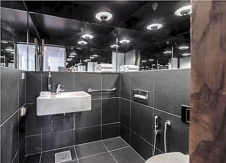 This modern room includes a mini-bar and flat-screen TV.