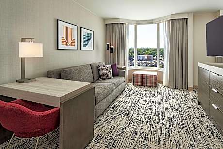 Located on Country Club Plaza and 10 minutes’ drive from the center of Kansas City, Missouri, this hotel features both indoor and outdoor pools. Free Wi-Fi is available in all areas. A 32-inch flat-screen TV, a microwave and a small refrigerator are found in each decorative room at Hilton Kansas City Country Club Plaza. Coffee-making facilities and a work desk are also included. The Gallery Restaurant serves a hot breakfast buffet each morning as well as lunch and dinner through the day. Guests can also enjoy drinks from the lounge or the Starbucks kiosk. A fitness center is open to all guests of the Hilton Kansas City Country Club Plaza. Concierge services and free weekday newspapers are also available. The Nelson-Atkins Museum of Art and Kansas City Sculpture Park are 5 minutes’ drive from the hotel. The National World War I Museum is less than 10 minutes’ drive away.