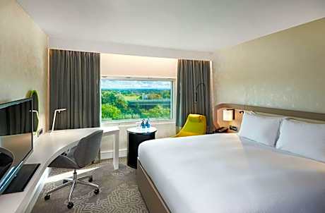 The multi-award winning Hilton London Heathrow Hotel has recently benefited from an extensive refurbishment as part of its continued commitment to creating the perfect guest experience. Find us seven minutes from Terminal 4 via covered walkway. We’re also less than 15 minutes from Heathrow Terminals 2, 3, and 5, and our guest service team will be happy to assist with your connection. Paddington Station in Central London is 30 minutes away via Heathrow Express. Windsor Castle and LEGOLAND® Windsor Resort are within 12 miles of our door. With 398 guest rooms, which includes executive rooms and stylish suites for the ultimate in luxury, the hotel also offers guests a whole host of amenities. Along with an onsite gym, fitness lovers can take advantage of the running and walking trails in the parklands around the hotel, or enjoy a meal, snack or drink in one of the three OXBO dining experiences, which are available from early morning until late at night. The hotel features an OXBO Café, OXBO Bar and OXBO Kitchen, each offering their own distinct menu – but all offering responsibly sourced, comforting and generous dishes. The hotel has extensive conference, events and meeting facilities, with 15 meeting rooms which can easily accommodate numbers from one to 300. The hotel is one of the first to offer Hilton’s EventReady Hybrid Solutions, which gives event planners an additional and invaluable tool to organize events for up to 20 people going forward. The event spaces include the brand new Concorde Exhibition, with floor to ceiling windows, allowing natural light to infiltrate the space with a fantastic view over the hotel pond. It can easily accommodate up to 170 people and is versatile enough to accommodate everything from a drinks reception to a product launch.