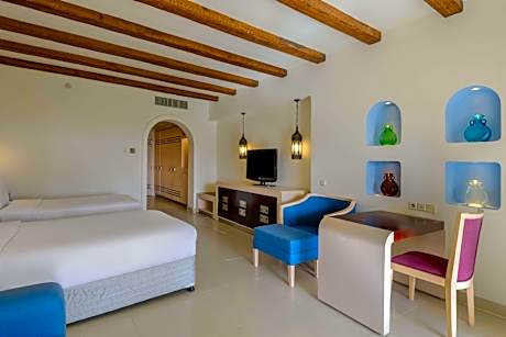 On the West Coast of Egypt’s Red Sea with a beachfront location, this resort looks like a small village surrounding 4 outdoor pools. It features a 24-hour gym and rooms with views of the Red Sea. The wide dining choice includes a Bedouin-themed cafe with water pipes and belly dancing. The main restaurant offers oven-baked pizzas and a dessert buffet. Salads and grilled kebabs can be ordered at the poolside bar. The air-conditioned rooms of Hilton Marsa Alam Nubian Res have elegant contemporary décor, balconies and flat-screen TVs. They include wood ceiling beams and mosaic bathrooms with frameless showers. Guests of Hilton Marsa Alam can book diving excursions in Abu Dabab Bay reef. The children have a playground and a kids' club, and a babysitting service is also provided. Marsa Alam International Airport is 19 miles north of Nubian Resort.