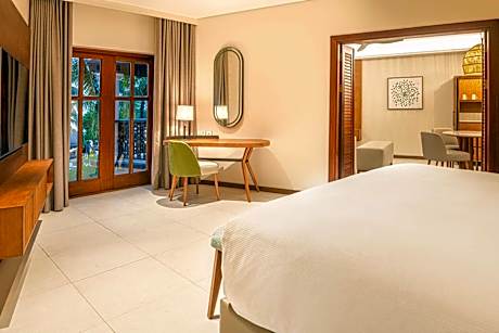 This luxurious 5-star Hilton resort has a beachfront location 2.5 mi from Flic en Flac. It offers on-site diving tuition, a choice of 3 restaurants and a lagoon-style swimming pool. The guest rooms at Hilton Mauritius Resort & Spa are extremely spacious, and each has a luxury marble bathroom and a large terrace with views over the gardens or the Indian Ocean. The Hilton Mauritius restaurant options include beachside dining, freshly caught seafood and Thai specialties. The Vista Bar serves local rum and enjoys sunset views. Spa facilities at Hilton Mauritius include massage therapies and relaxing saunas. Recreational facilities include tennis courts, a water sports center and a golf putting green. The highlight of the resort is its long stretch of white-sand beach where you can swim or learn water sports. The Hilton Mauritius Resort & Spa is a 15-minute drive from Port Louis, the island’s capital. Sir Ramgoolam International Airport is about an hour away.