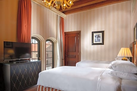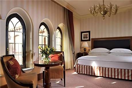 Set on the tranquil banks of Giudecca Island, Hilton Molino Stucky Venice is a unique hotel housed in a refurbished former flour mill. This Venetian masterpiece offers a blend of contemporary décor and historic charm, providing an unforgettable stay. The hotel features air-conditioned rooms and suites equipped with flat-screen TVs, marble bathrooms, and coffee makers, with some rooms offering stunning views of the town and canal.